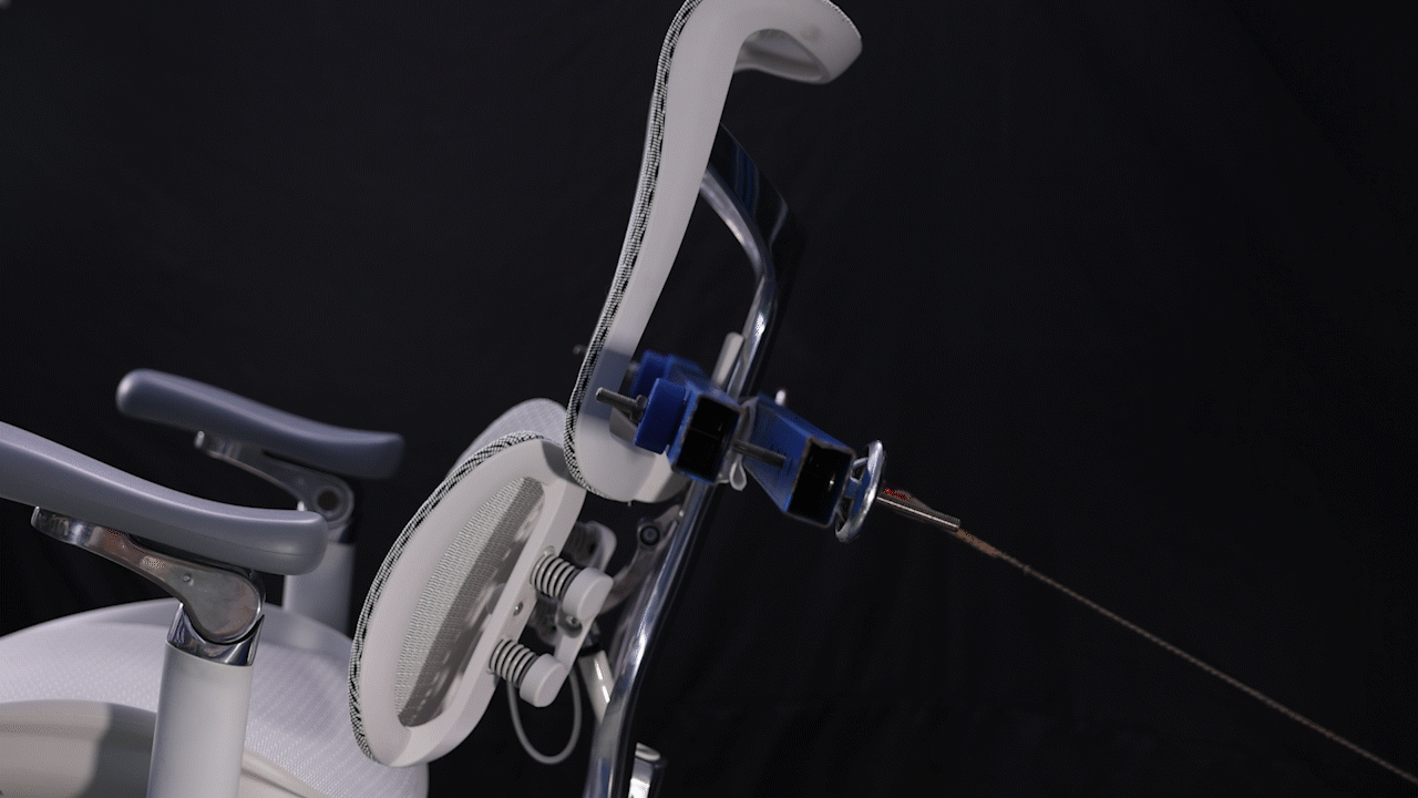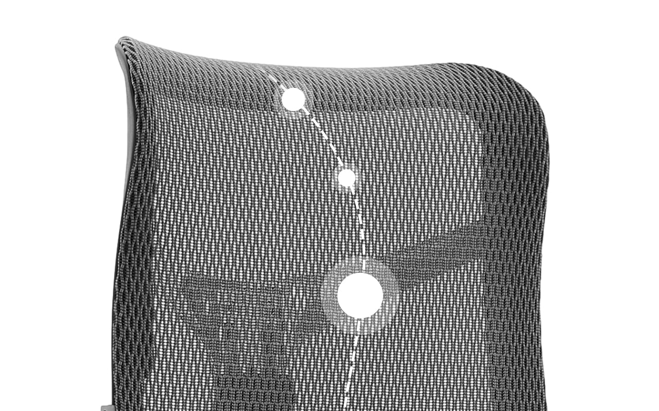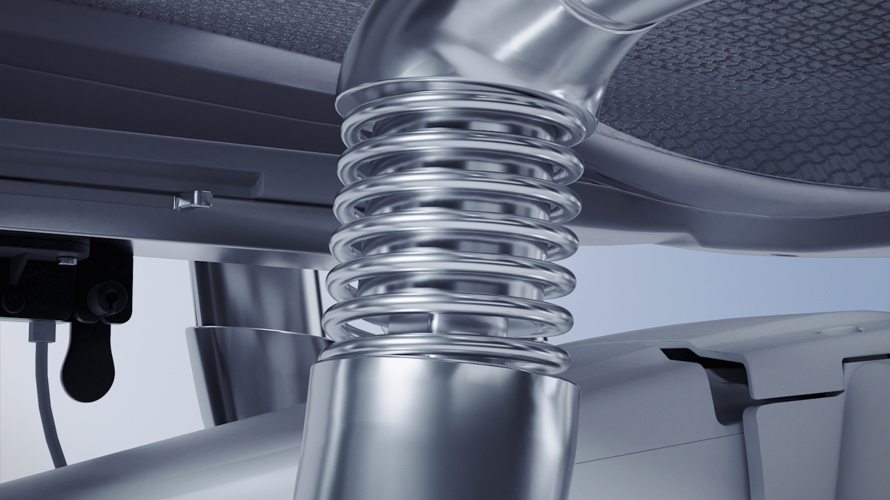 Connected to the main frame by four highly elastic springs, these pads dynamically adapt to different body shapes and sitting postures, ensuring consistent support. Additionally, a gas lift enables individual adjustment of the lumbar support angle, ranging from 90° to 105°, for a personalized fit.